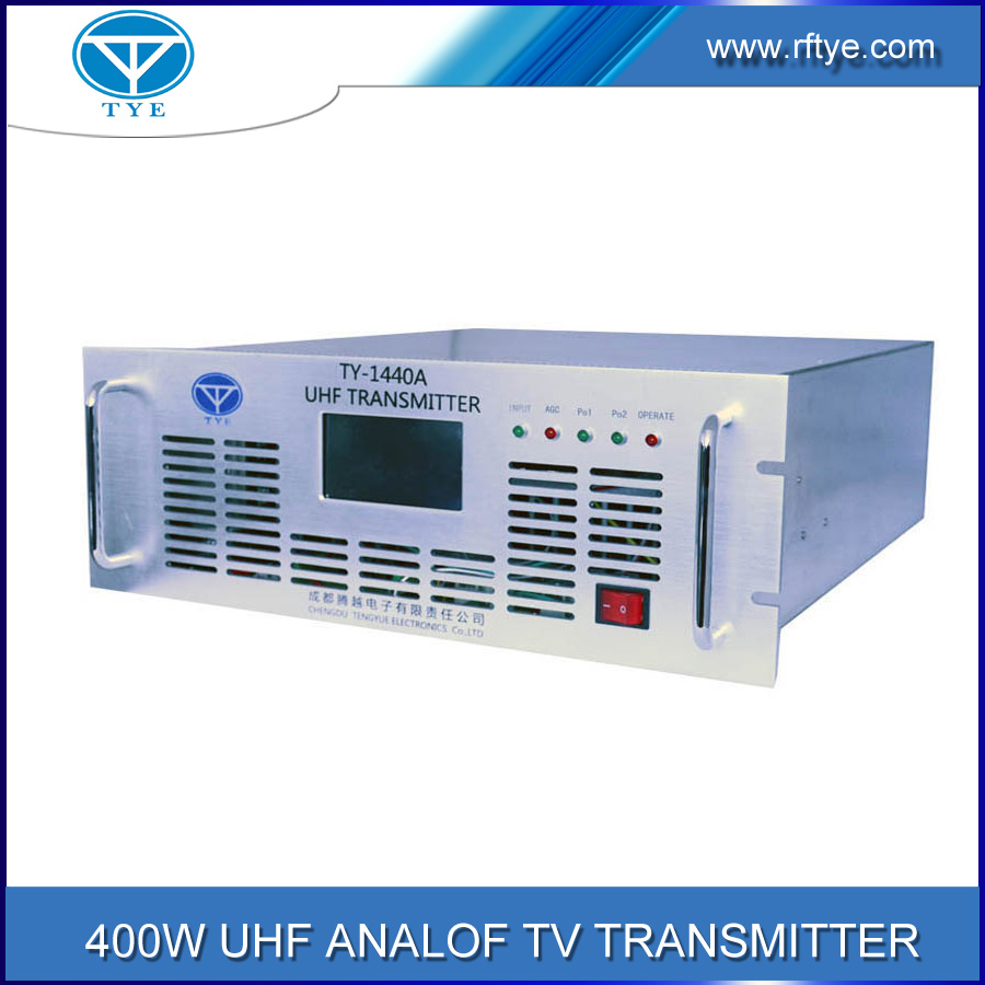 The TY-1440A is a kind of transmitter working on UHF band 470MHz-860 MHz, and the Rated Output Power: 400W. It is widely used for analog TV signal transmission and can meet with various standards like PAL B/G, NTSC, SECAM. It is specially designed to supply common or pilot frequency coverage and subsidiary station by consuming small and medium power for terrestrial digital TV transmission. It is applicable to built-up areas, basement, tunnel and remote mountainous areas. Its main advantages include installation convenience and simple process in debugging and maintenance, etc. And in any combination of multiple antenna-feeder system it can supply local coverage and subsidiary station of wireless digital signal in the blind area. In addition to being widely used in domestic all-level television stations and network companies, it has exported in bulk to places like Southeast Asia and Africa.